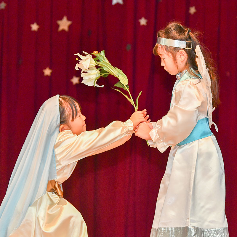 運動会や生活発表会、クリスマス会、作品展などの行事を通して、ひとつの目的に向かって心を合わせることと、経験・体験を積み重ねる力を身に付けていきます。